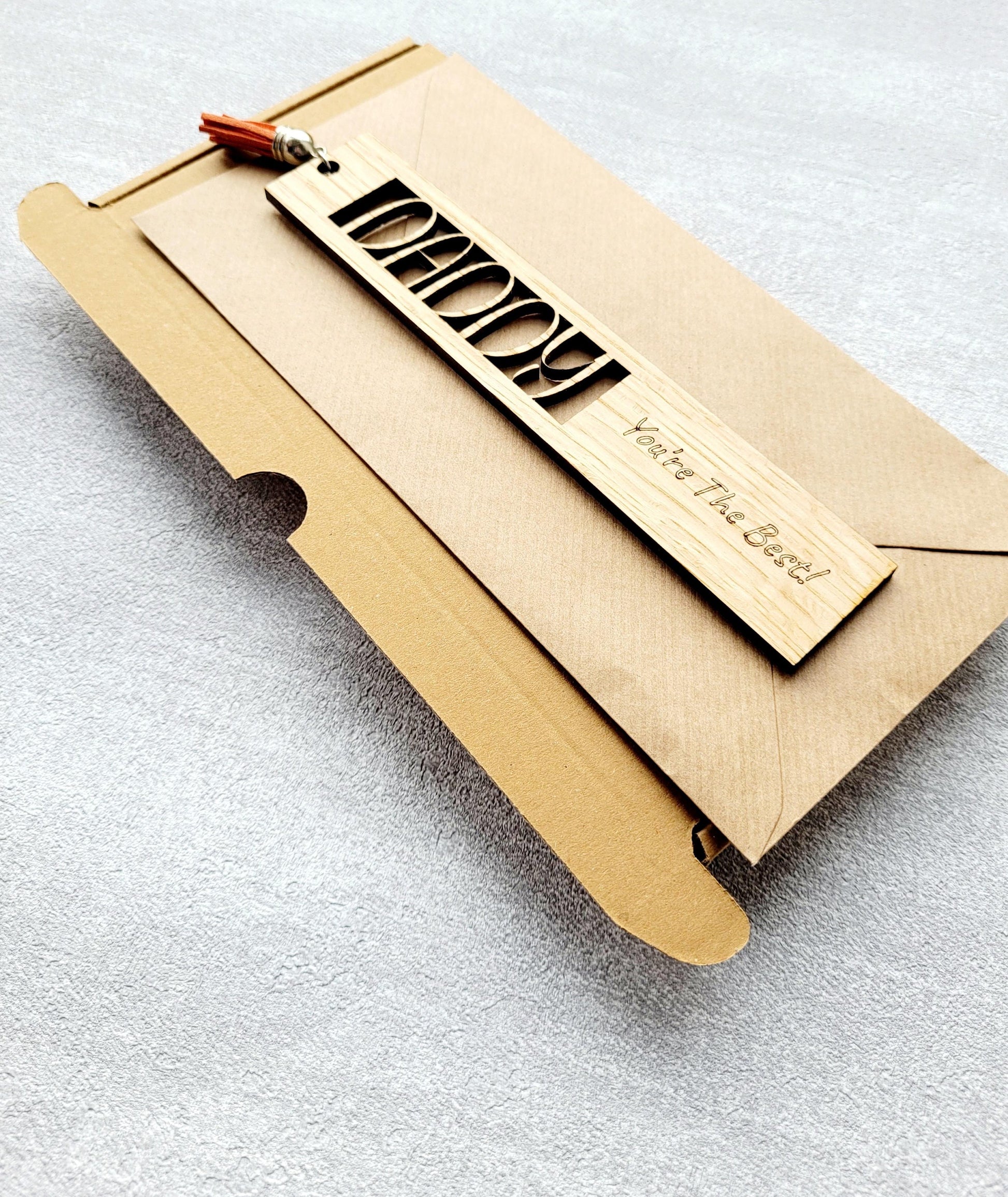 This is an Oak, Maple or Walnut Bookmark with a word cut out, a tassel and the option to add a personalised message.