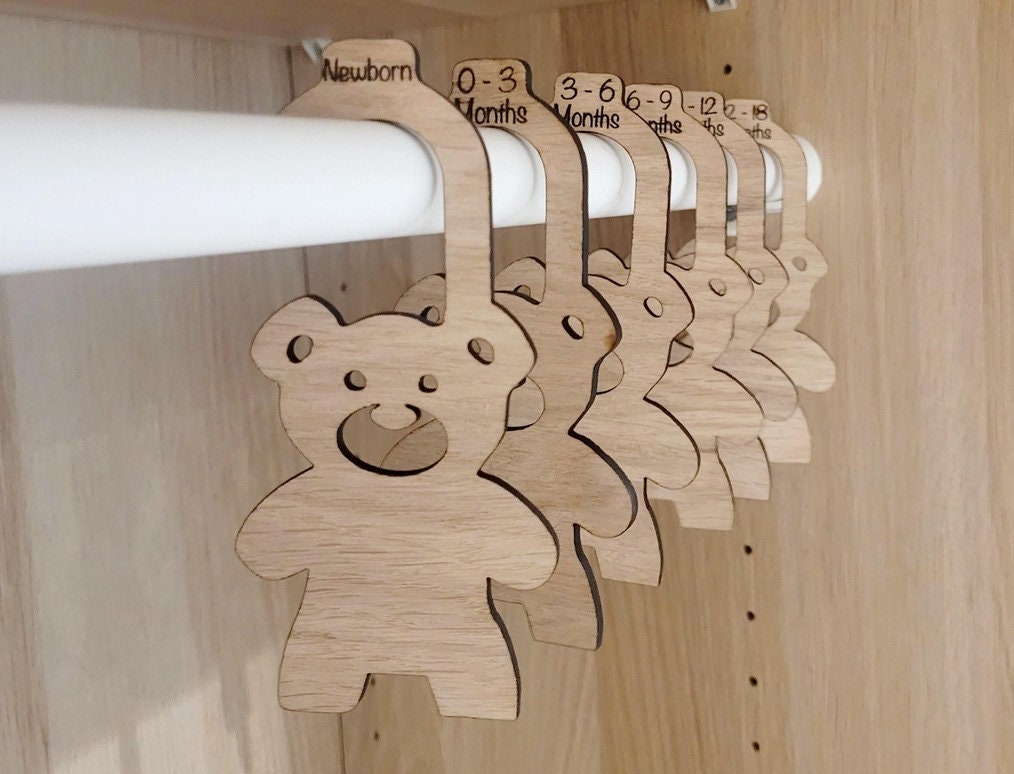 These Oak Veneer Bear shaped hanging wardrobe dividers are a great way to organise your wardrobe. I custom make and I can personalise them to your requirements, making them a perfect gift!