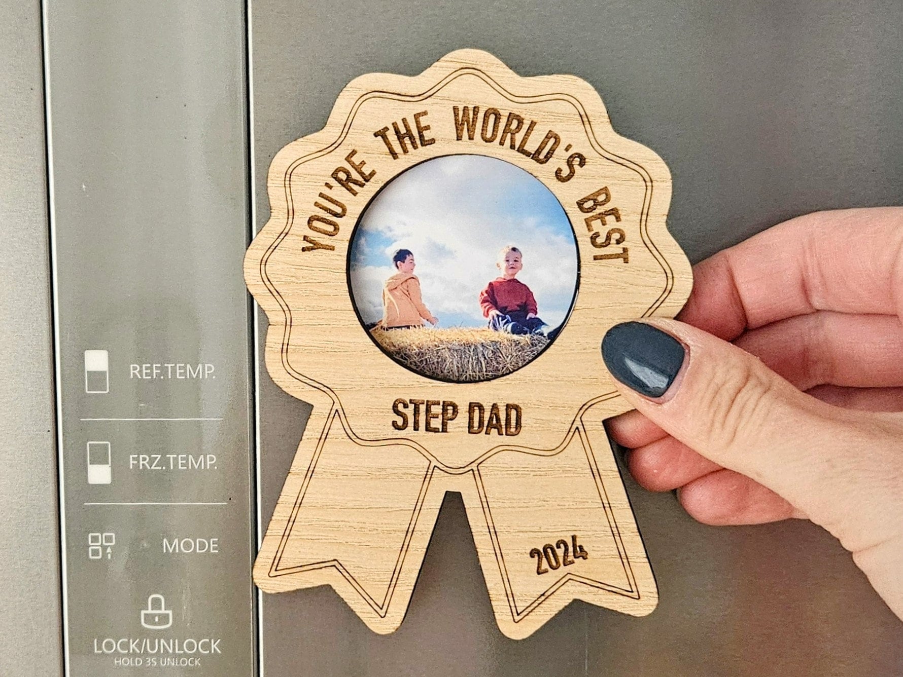 World’s Best Step Dad – Personalised Wooden Medal Fridge Magnet