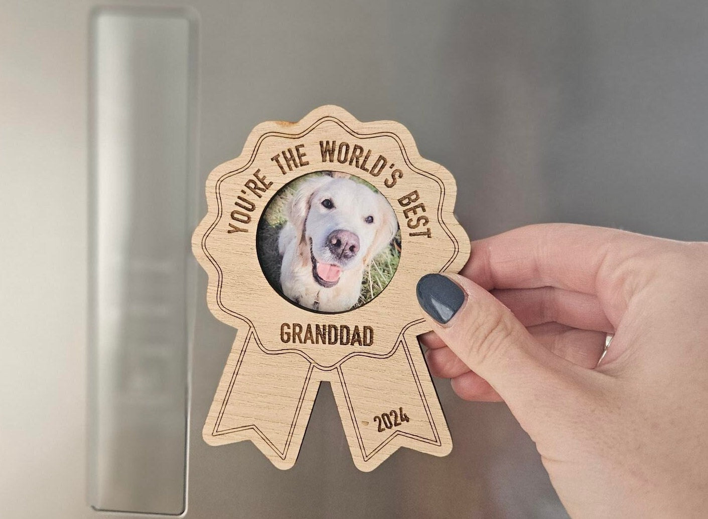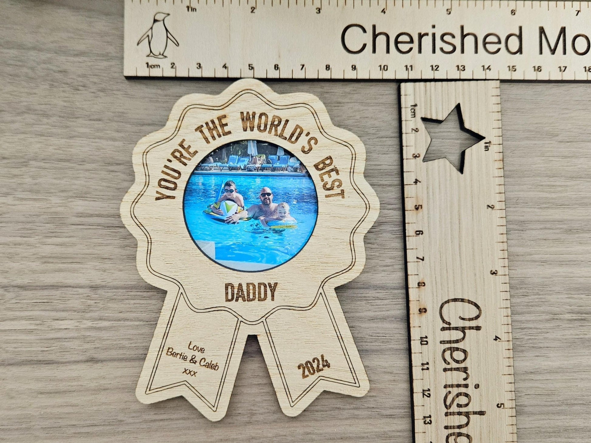 Show him just how much he is cherished with this personalised wooden fridge magnet, designed in the style of a medal – the perfect way to award him with a meaningful keepsake!